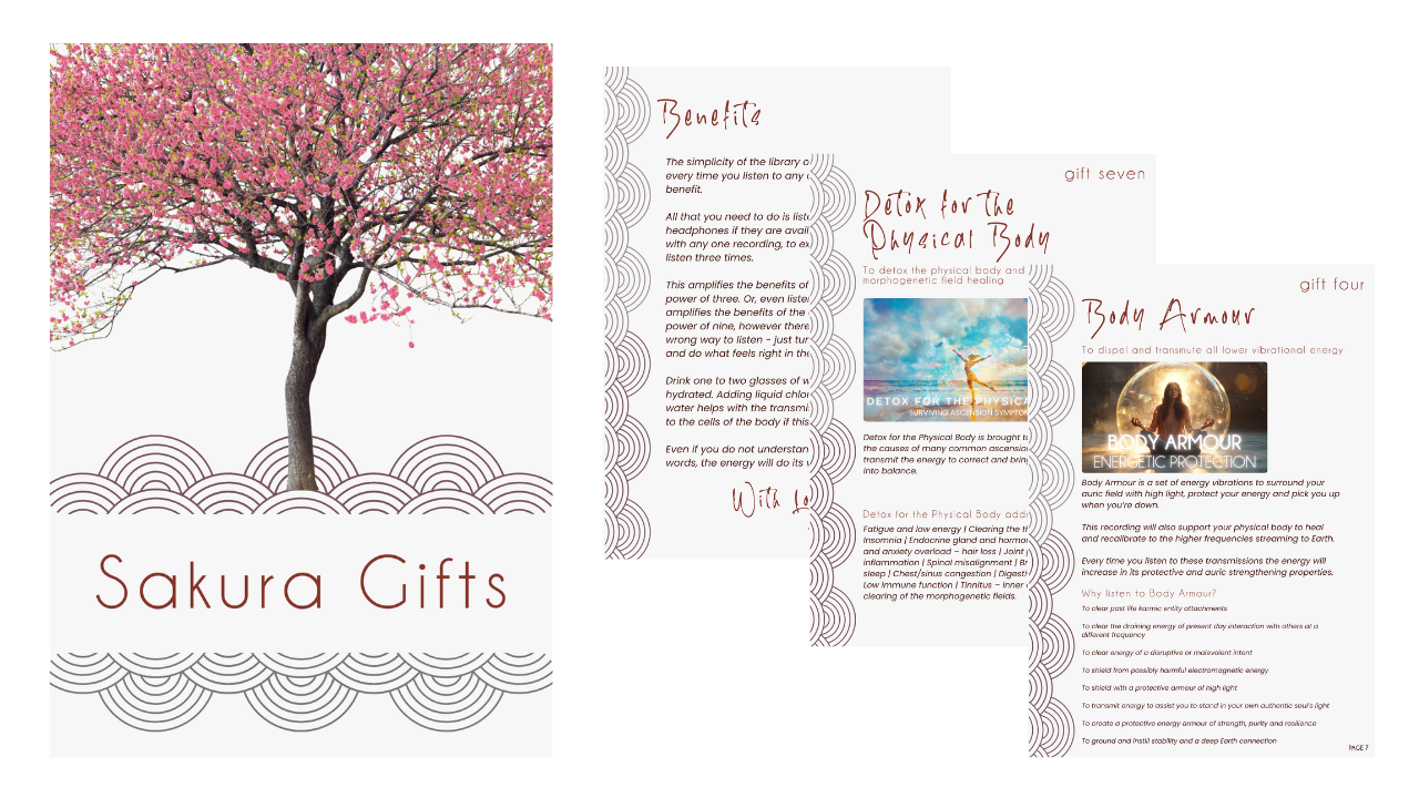 Each one of these ten Sakura gifts have been hand-picked from my online Ascension Library, and will help you to transform and renew your life, to enter into a new chapter of heightened physical and emotional wellbeing, peace, love and joy. They are energy gifts from Spirit for a new beginning.